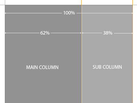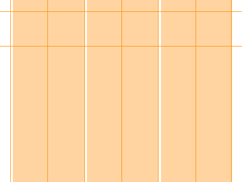 上图网格系统中的内容与导航区域是基于三分法则(Rule of Thirds, 大致接近黄金分割比的比例)。 然后再将每个区域二分。至此便完成了水平方向的网格划分。