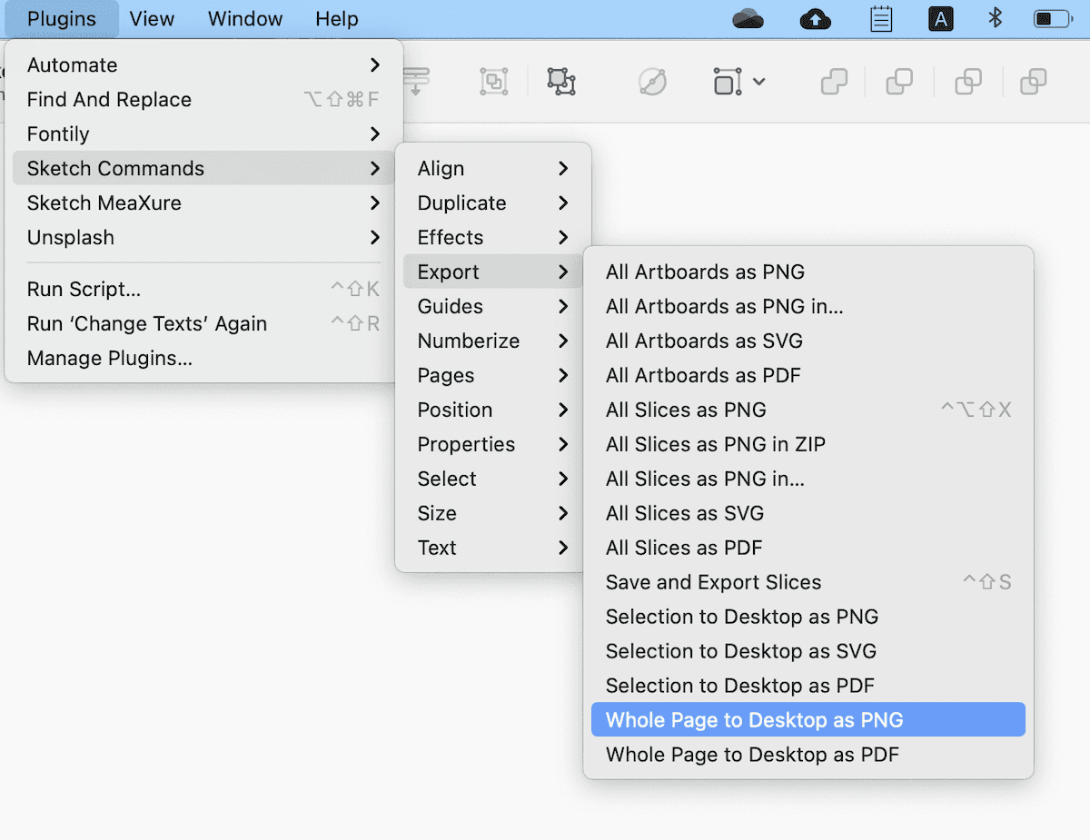 Sketch Commands 跟 Automate 那款插件的部分命令行略有不同,个人主要看重它的导出功能,因为它支持将多块画布导出为 PNG 或 PDF。